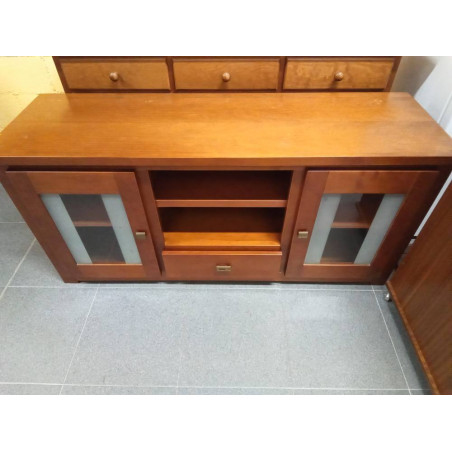 MUEBLE BAJO TV CEREZO PUERTAS CRISTAL
