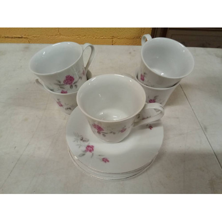 5 TAZAS Y PLATOS FLORES ROSAS