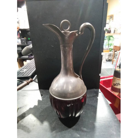 JARRA ANTIGUA PELTRE CRISTAL TALLADO
